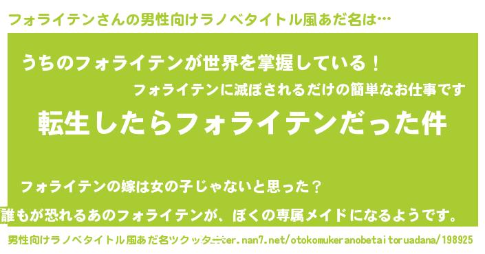 | 女子向けラノベタイトル風あだ名 | 『フォライテンの玉の輿計画!』 |