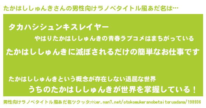 | 女子向けラノベタイトル風あだ名 | 『横柄たかはししゅんきと宰相陛下』 |