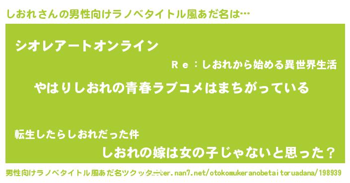| 女子向けラノベタイトル風あだ名 | 『しおれの雑貨屋さん』 |