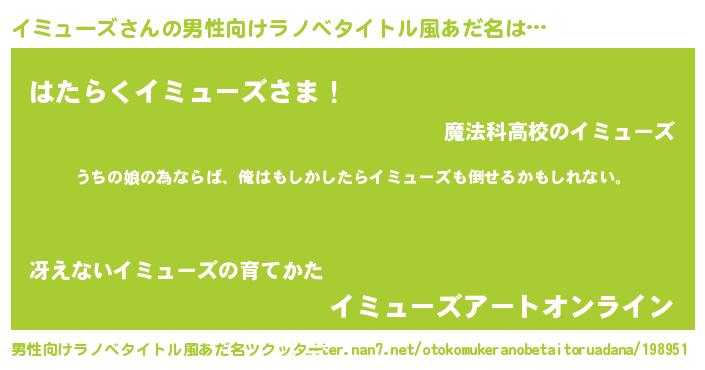 | ファンタジー風あだ名 | 『エターナルイミューズー』『イミフェル』 |