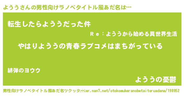 | 女子向けラノベタイトル風あだ名 | 『ようう伯爵の花嫁』 |
