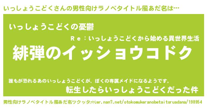 | ヒーロー風カッコイイあだ名 | 『スーパーイッショウコドク』 |