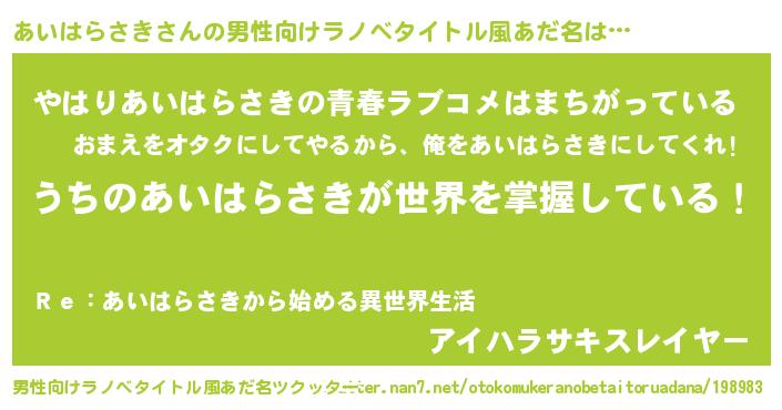 | 胡散臭い通販商品みたいなあだ名 | 『運命の人と巡り会える高級そうな絵画…その名も「あいはらさき」』 |