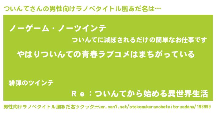 | 女子向けラノベタイトル風あだ名 | 『ついんての雑貨屋さん』『闇のついんて』 |