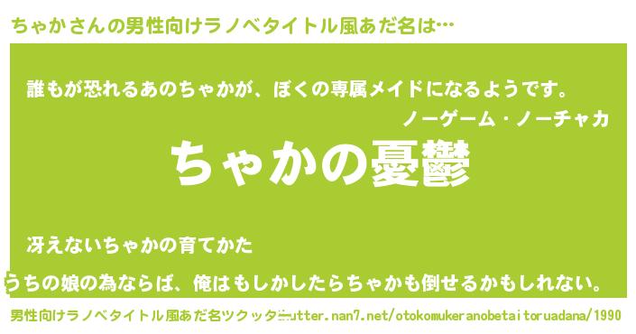 | 意味不明あだ名 | 『ペロリンちゃか』『永久保存ちゃか』 |