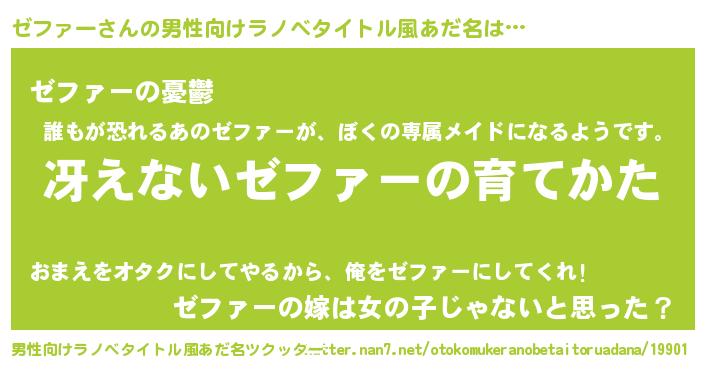 | 胡散臭い通販商品みたいなあだ名 | 『モテモテ間違いなしブレスレット…その名も「ゼファー」』 |