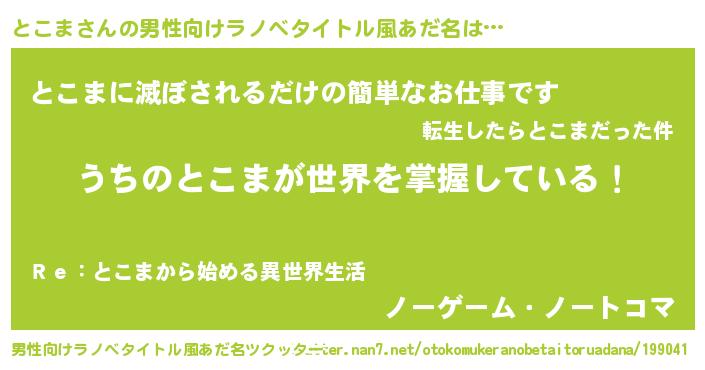 | ヒーロー風カッコイイあだ名 | 『慈愛の使者とこま』『ネオトコマ』 |