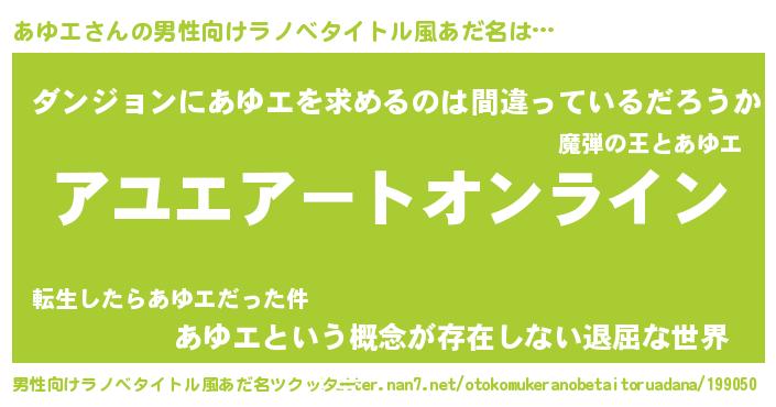 | 胡散臭い通販商品みたいなあだ名 | 『億万長者になれる霊験あらたかなお札…その名も「あゆエ」』 |