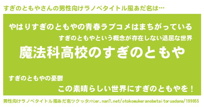 | 意味不明あだ名 | 『自称すぎのともや』 |