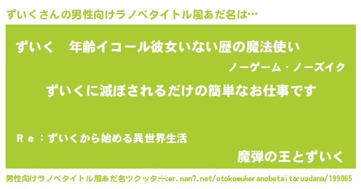 | 伝説のあだ名 | 『救世主となる錬金術士ずいく』 |