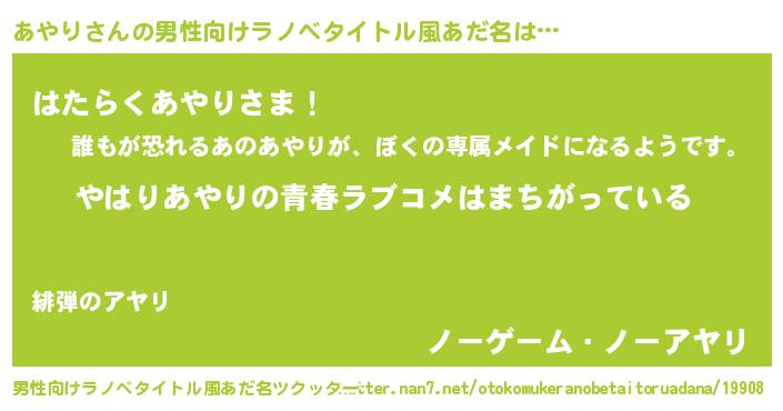 | ファンタジー風あだ名 | 『エターナルアヤリー』『クインアット』 |