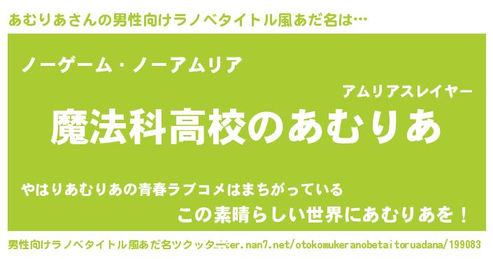 | 女子向けラノベタイトル風あだ名 | 『あむりあアンティーク』 |