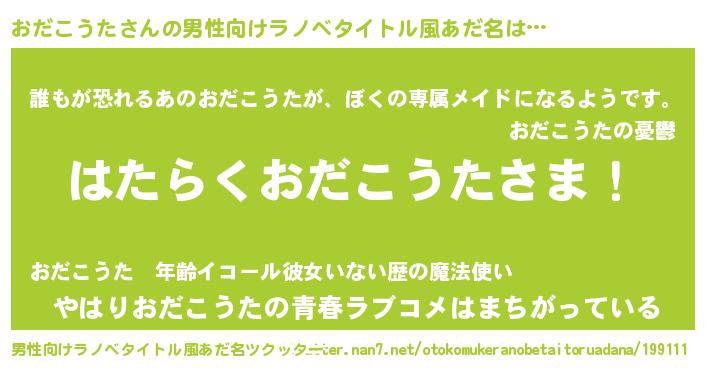 | 胡散臭い通販商品みたいなあだ名 | 『絶対に幸福をもたらす水素水…その名も「おだこうた」』 |