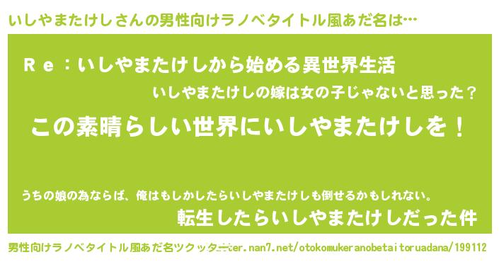 | 意味不明あだ名 | 『住所不定無職いしやまたけし(13歳)』 |