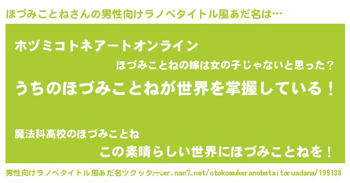 | 胡散臭い通販商品みたいなあだ名 | 『億万長者になれる水晶球…その名も「ほづみことね」』 |