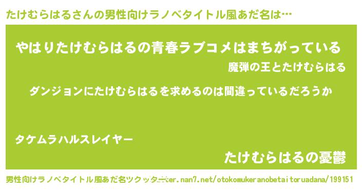| 意味不明あだ名 | 『とにかく怪しいたけむらはる』 |