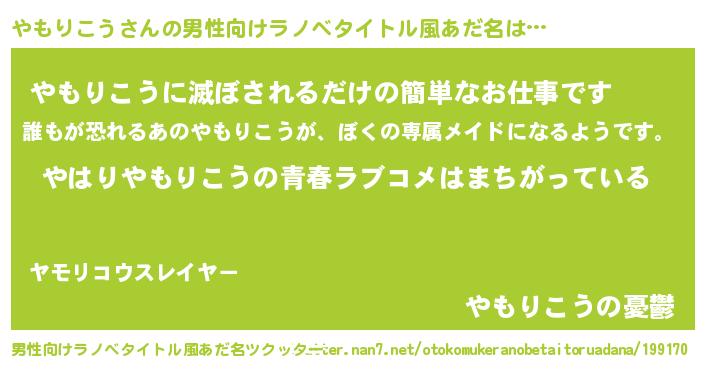 | 女子向けラノベタイトル風あだ名 | 『やもりこう伯爵の花嫁』 |