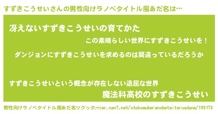 | 女子向けラノベタイトル風あだ名 | 『すずきこうせいは平凡を望む』 |