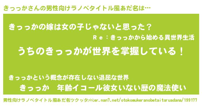 | 女子向けラノベタイトル風あだ名 | 『男装きっっかの憂鬱な任務』 |