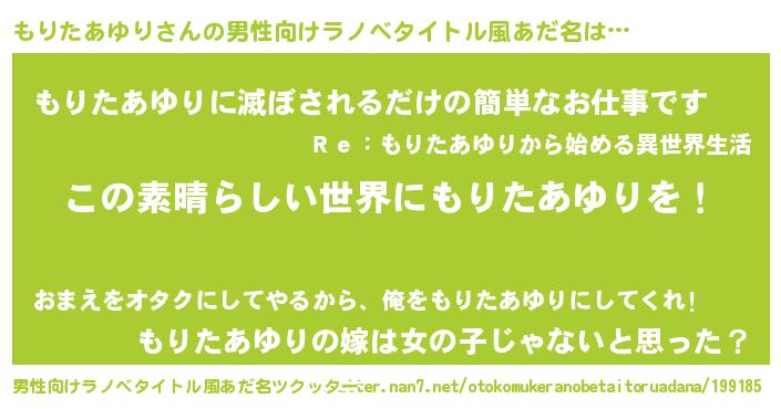 | 女子向けラノベタイトル風あだ名 | 『悪役もりたあゆりに転生したようですが、知った事ではありません』 |