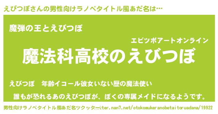 | 女子向けラノベタイトル風あだ名 | 『えびつぼなんてお断りですっ。』 |