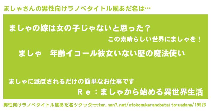 | 女子向けラノベタイトル風あだ名 | 『ましゃの玉の輿計画!』『闇のましゃ』 |
