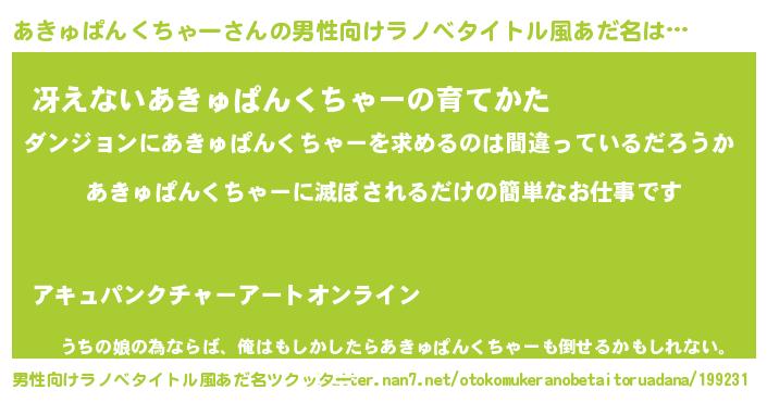 | 胡散臭い通販商品みたいなあだ名 | 『運命の人と巡り会える高級そうな壺…その名も「あきゅぱんくちゃー」』 |