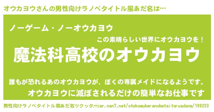 | 女子向けラノベタイトル風あだ名 | 『オウカヨウなんてお断りですっ。』 |