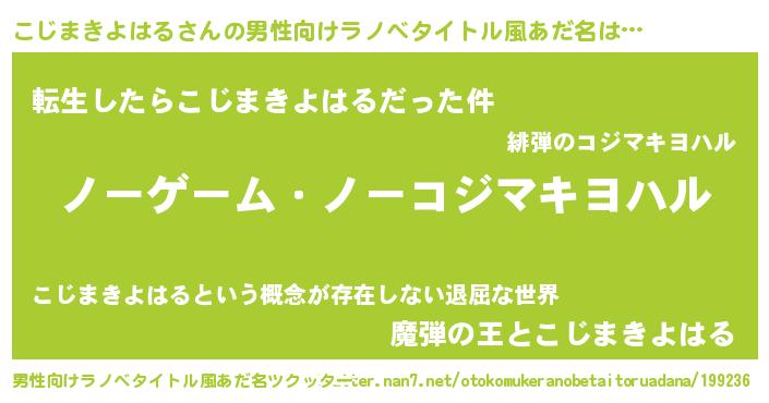 | 女子向けラノベタイトル風あだ名 | 『こじまきよはる恋絵巻』 |