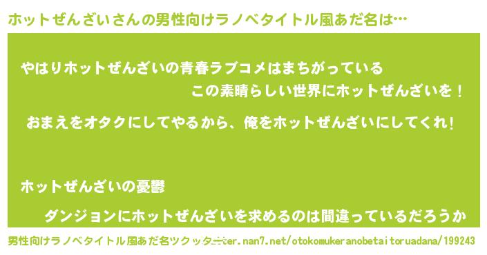 | 伝説のあだ名 | 『人々から恐れられる占い師ホットぜんざい』 |