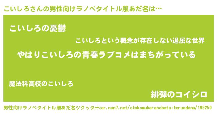| 意味不明あだ名 | 『こいしろフォーエバー』『自称こいしろ』 |