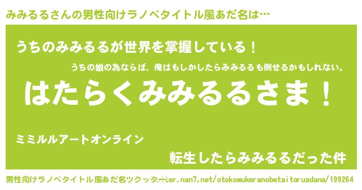 | 胡散臭い通販商品みたいなあだ名 | 『幸せが訪れる高級そうな壺…その名も「みみるる」』 |