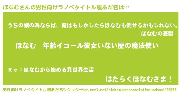 | 胡散臭い通販商品みたいなあだ名 | 『運命の人と巡り会える高級そうな壺…その名も「ほなむ」』 |