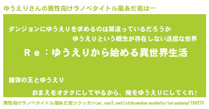 | ヒーロー風カッコイイあだ名 | 『究極戦士ユウエリ』『暗黒騎士ユウ』 |