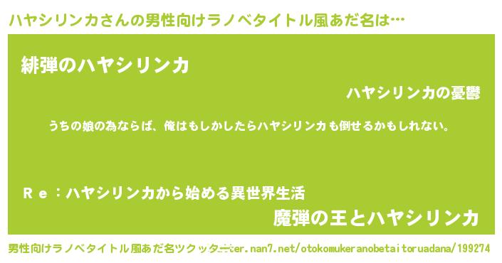 | 女子向けラノベタイトル風あだ名 | 『ハヤシリンカの婚約者』 |