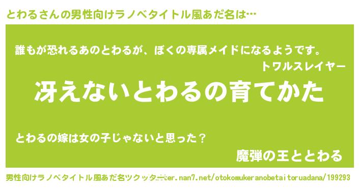 | ヘコむあだ名 | 『とわる(小並感)』『とわを』 |