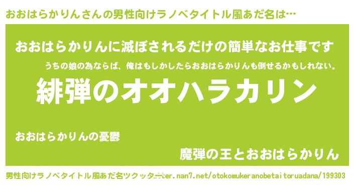 | 意味不明あだ名 | 『住所不定無職おおはらかりん(74歳)』 |