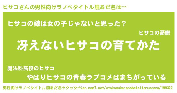 | 女子向けラノベタイトル風あだ名 | 『シンデレラヒサコ家の靴箱館』 |
