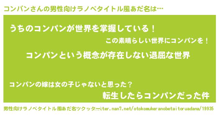 | 胡散臭い通販商品みたいなあだ名 | 『絶対に幸福をもたらす健康食品…その名も「コンパン」』 |