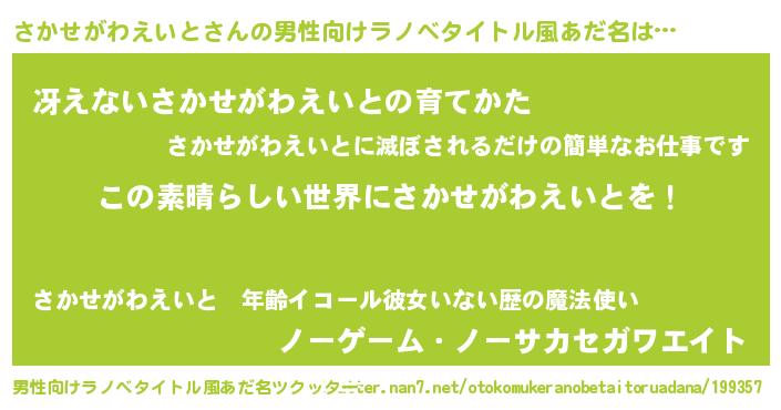 | 意味不明あだ名 | 『住所不定無職さかせがわえいと(53歳)』 |
