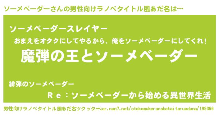 | 意味不明あだ名 | 『住所不定無職ソーメベーダー(77歳)』 |