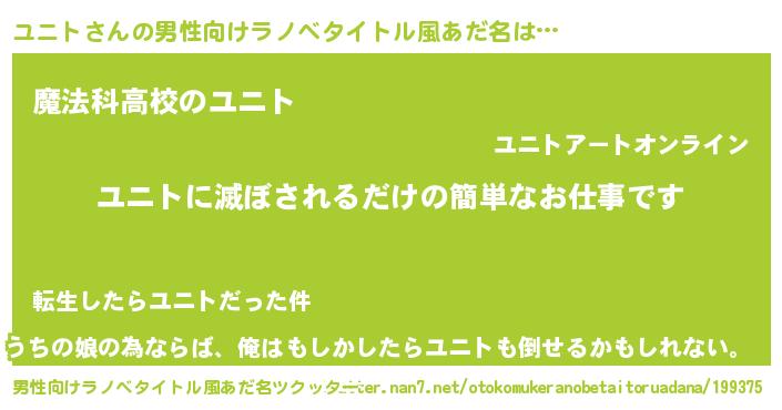 | ファンタジー風あだ名 | 『ゼユニトゥ』『エターナルユニトー』 |