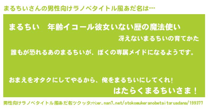 | 女子向けラノベタイトル風あだ名 | 『まるちいの契約王妃』『まるちい恋絵巻』 |