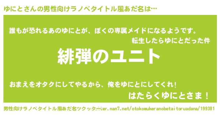 | 胡散臭い通販商品みたいなあだ名 | 『絶対に幸福をもたらす健康食品…その名も「ゆにと」』 |