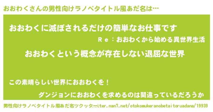 | 意味不明あだ名 | 『永久保存おおわく』『自称おおわく』 |