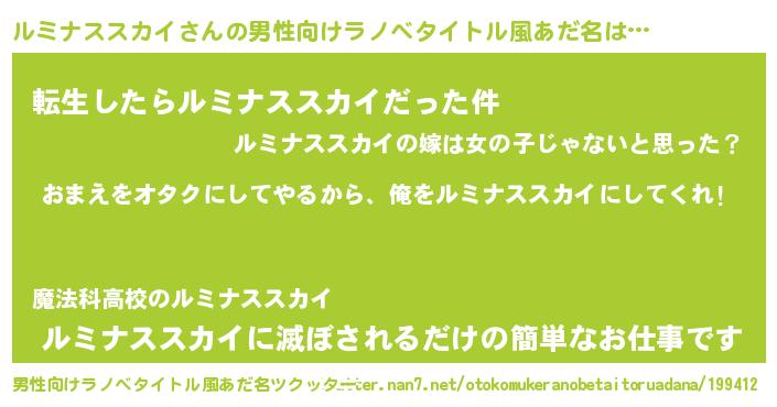| 女子向けラノベタイトル風あだ名 | 『ルミナススカイ夫妻のなれそめ』 |