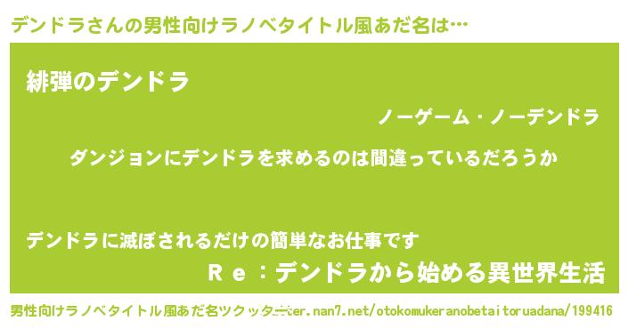 | 意味不明あだ名 | 『とにかく怪しいデンドラ』 |