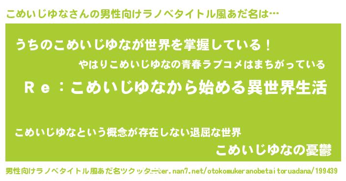 | 意味不明あだ名 | 『自称こめいじゆな』 |