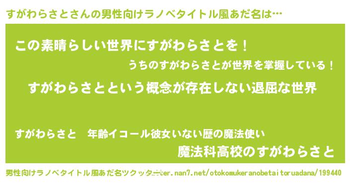 | 女子向けラノベタイトル風あだ名 | 『異世界で失敗しない100のすがわらさと』 |