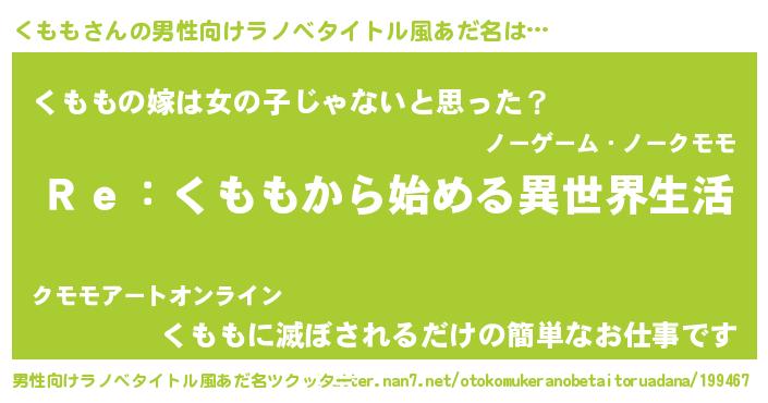 | ヘコむあだ名 | 『くもっ子』『くももー』『なまこ酢』 |